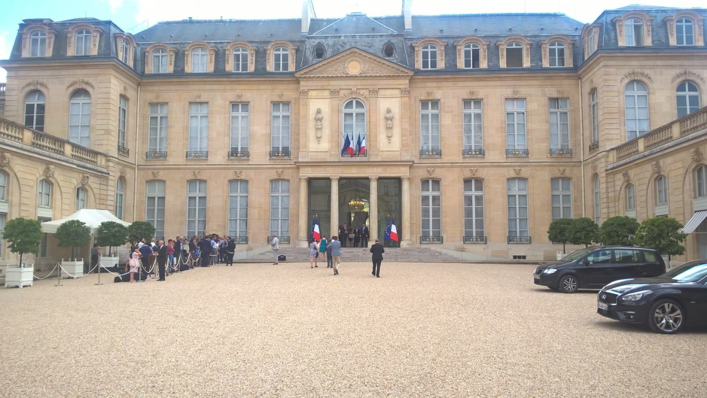 Les représentants de 250 sites retenus sur la liste de la Mission Bern ont été invités au palais de l’Elysée pour une présentation par la ministre de la culture, le président de la fondation du patrimoine, la présidente de la Française des jeux et par le président de la République.